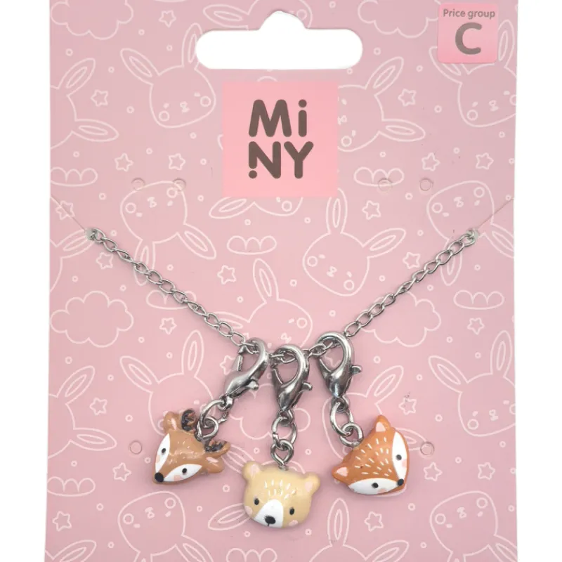 Lasten kaulakorussa on voi vaihtaa eläinteemaista korua päivän mukaan. Koruissa helppo pikalukkokiinnitys.