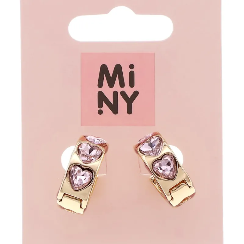 Lasten Miny-rengaskorvakorut kauniisti kimaltelevilla, sydämen muotoisilla koristekivillä yhden parin pakkauksessa.