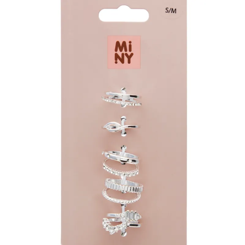 Miny Korut Ja Kellot^Sormussetti 8 Kpl Hopeanvärinen