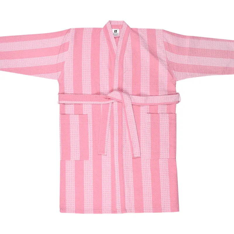 Miny Kylpyhuone- Ja Saunatekstiilit-Kylpytakki S/M Raita Vaaleanpunainen
