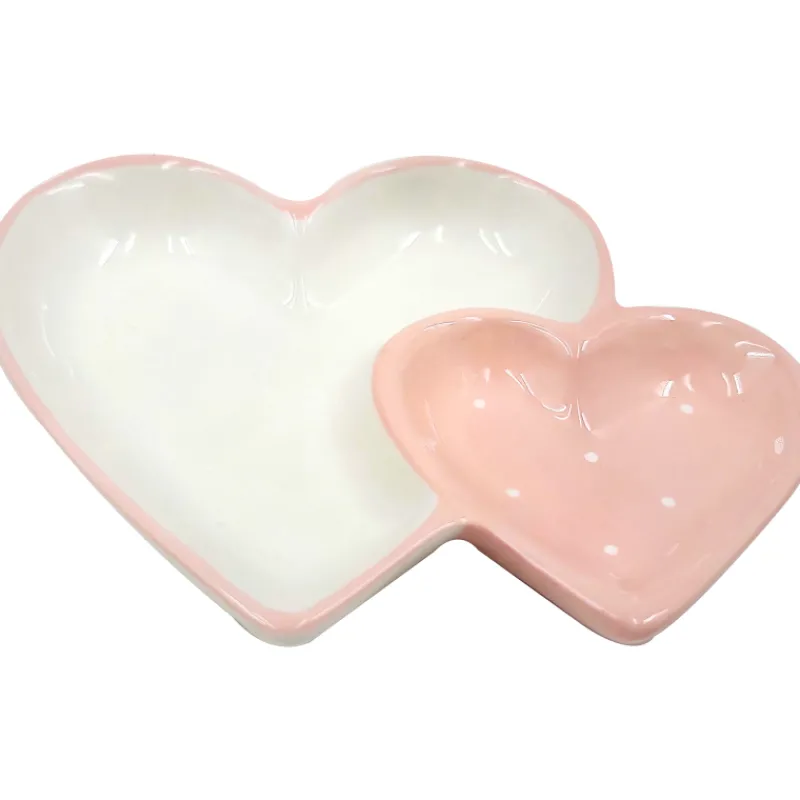 Kahdesta sydämestä muodostuva Miny-koristelautanen on ihastuttava yksityiskohta sisustukseen ja toimii kätevänä alustana esimerkiksi sisustusesineille tai avaimille.