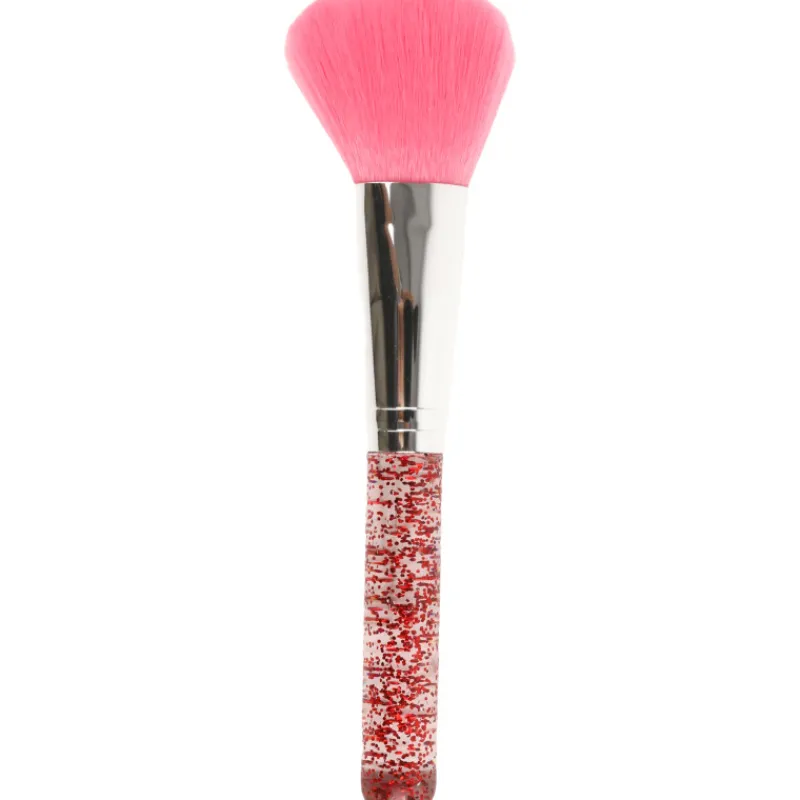 Vaaleanpunainen meikkisivellin levittää poskipunat ja puuterit kauniisti kasvoille.