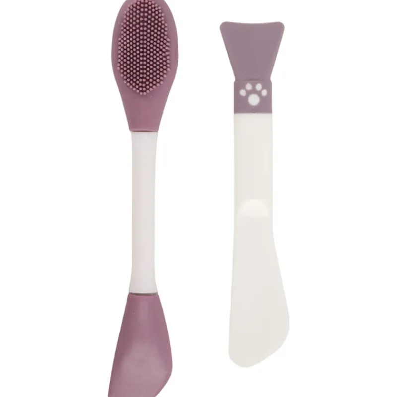 Varrellinen kasvoharja sekä sävyyn sopiva silikonisivellin avuksi kasvojenhoitoon.