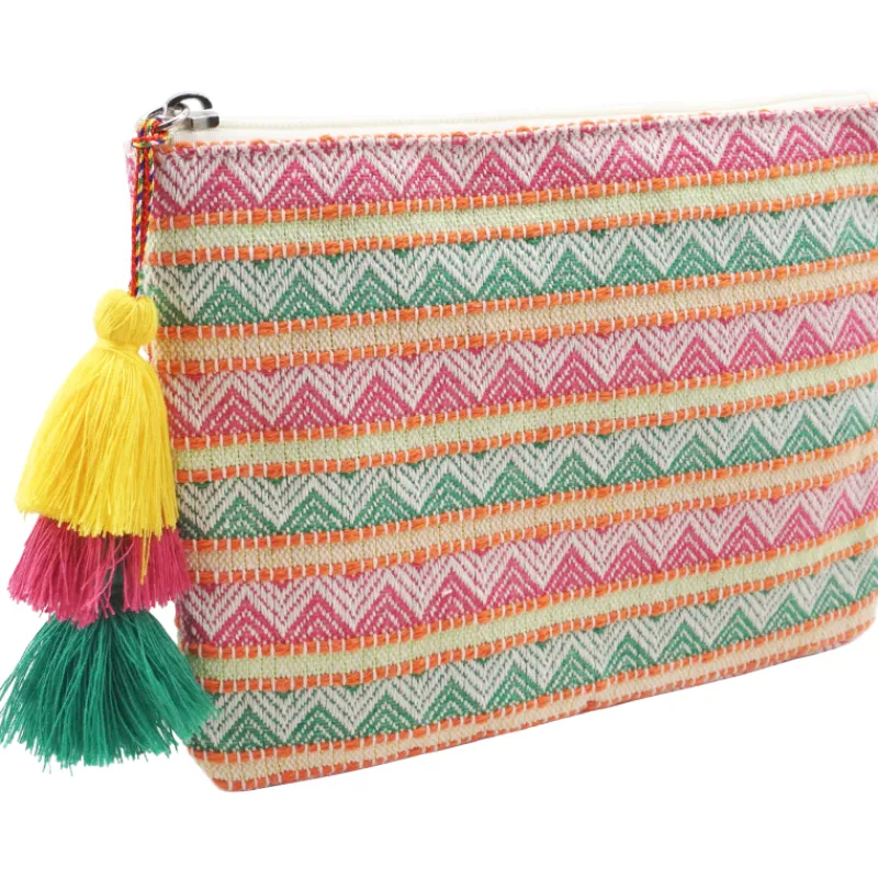 Värikkäässä pussukassa on riittävästi tilaa pienille esineille, kuten avaimille, puhelimelle ja kosmetiikalle.