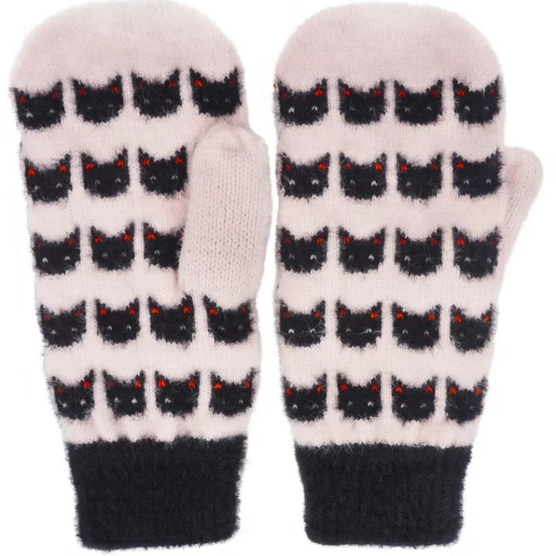 Kissakuvioiset rukkaset tuovat iloa talvipäiviin! Yhdistä ne suosikkitakkisi kanssa ja nauti lämpimistä käsistä.