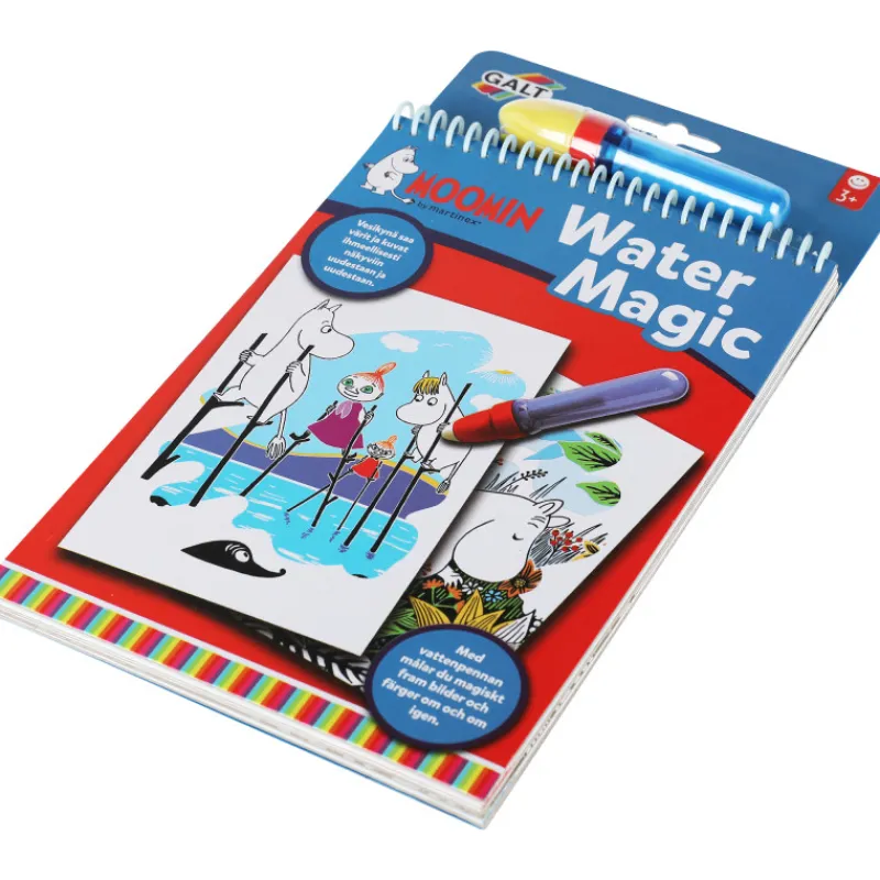 Muumi-vesitaikalehtiö tarjoaa muumiaiheista väritettävää yhä uudestaan ja uudestaan, sillä sen kuvia voi värittää kerran toisensa jälkeen. Täytä vain kynä vedellä ja väritä hahmot ja värit ihmeellisesti näkyviin. Kuvan kuivuessa sivu muuttuu taas valkoiseksi.