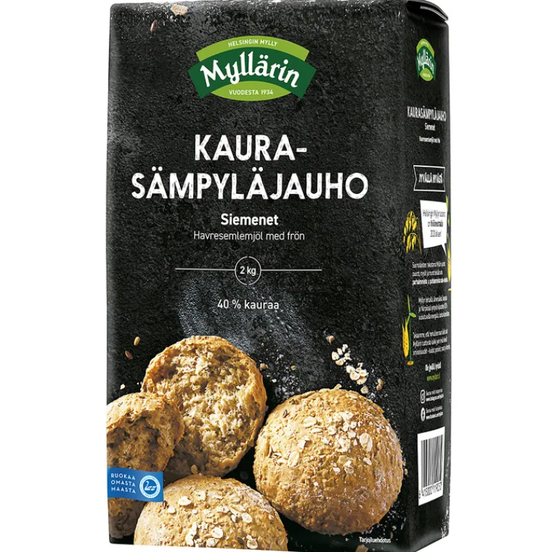 Myllärin Kaurasämpyläjauho Siemenet sisältää runsaasti terveellistä kauraa (40 %) ja pellavansiemeniä. Rouhea ja runsaskuituinen jauhoseos tuo helppoa ja piristävää vaihtelua sämpylöiden ja leipien leivontaan. KMyllärin-tuotteet valmistetaan kotimaisesta, lähellä kasvaneesta viljasta.