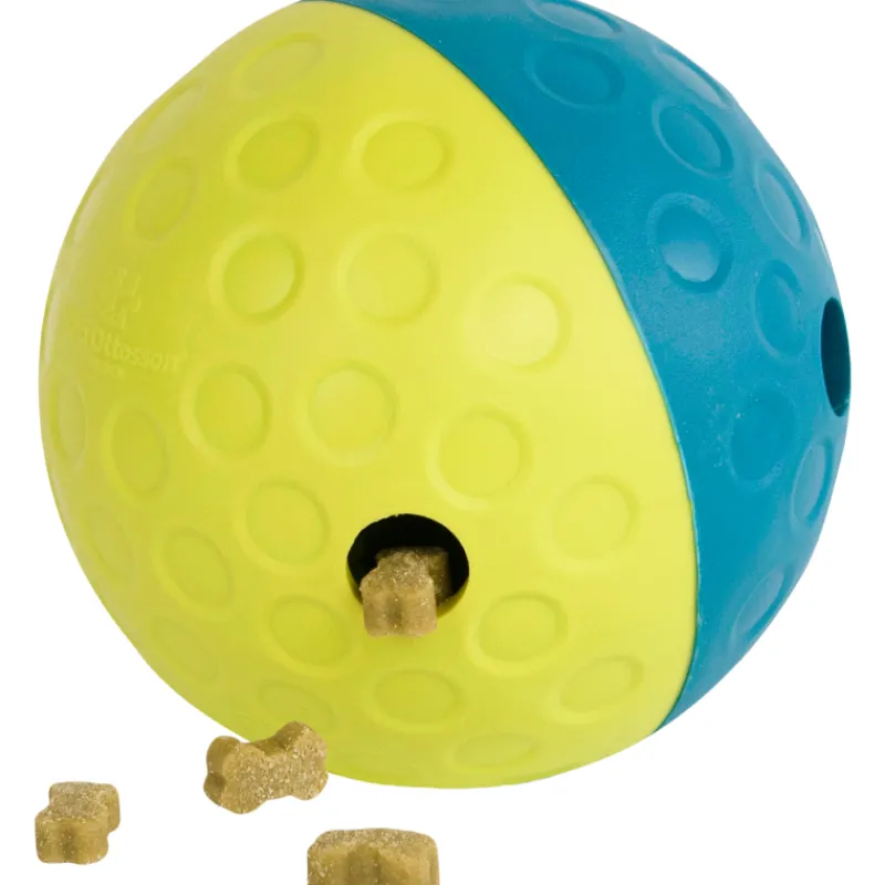 Nina Ottosson aktivointilelu on hauska tapa esitellä pulmapelejä koiralle. Täytä pieni annostelupallo herkuilla ja katso, kuinka koirasi tönäisee palloa saadakseen maukkaita palkintoja! Koiran pulmapeli on helppo puhdistaa saippualla ja lämpimällä vedellä käyttökertojen välillä.