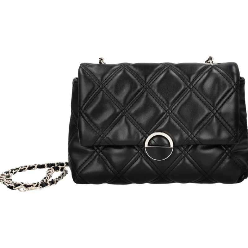 Suorakaiteen muotoinen, pehmeä noixx Mikela-käsilaukku tikatulla salmiakkiruutu-kuosilla. Väri musta.
