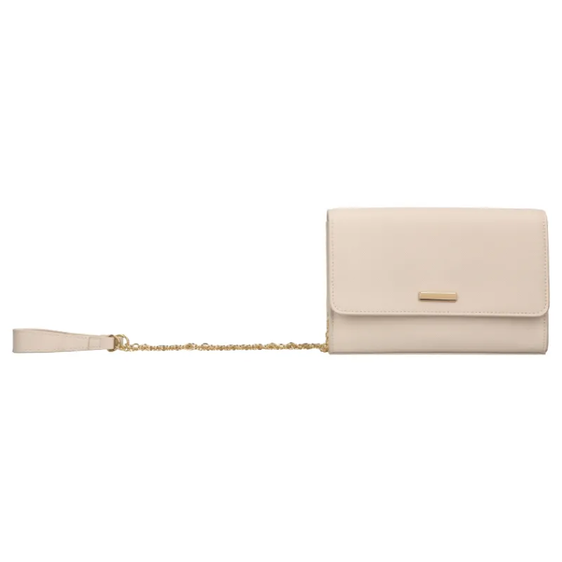 Pitkä kantohihna muodostuu kullanvärisestä metalliketjusta sekä PU-hihnaosasta, jolloin kovempi ketjuosa ei kuluta vaatteita.