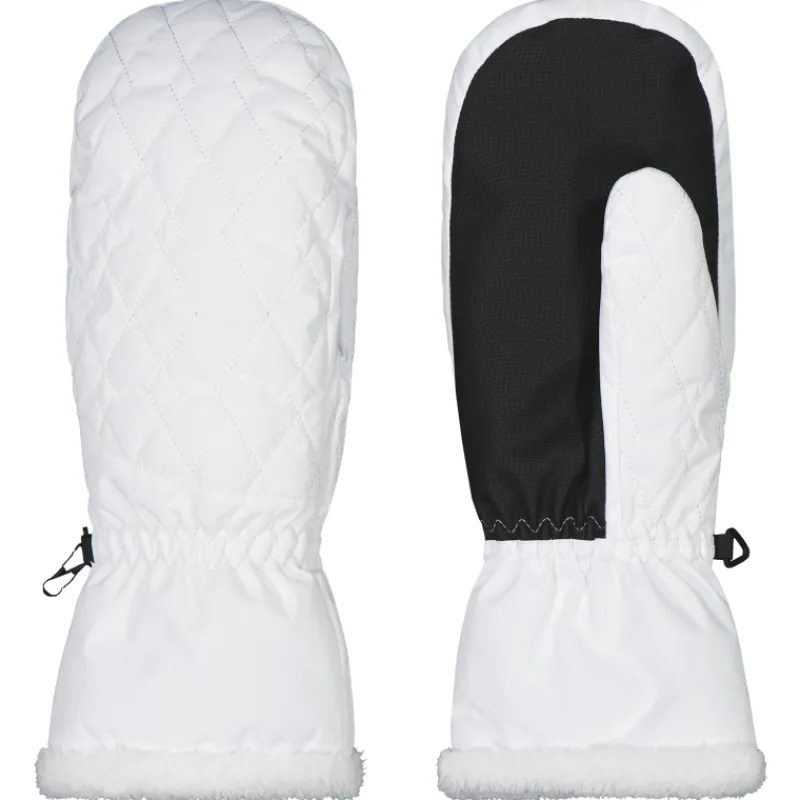 Vanulla topatuissa hanskoissa on hengittävä ja vedenpitävä sisäkalvo. Yläreunassa on pörröinen fleecereunus, ranteessa kosteutta estävä kiriste. Väri valkoinen.