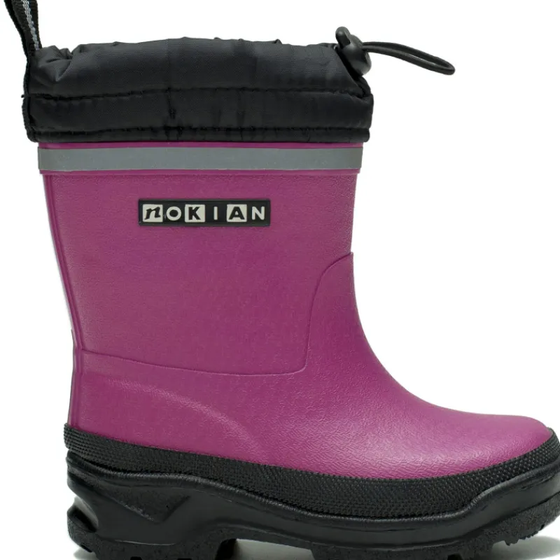 Wintry plus-kumisaappaiden varrensuussa oleva kiristysremmi estää roskien pääsyn saappaisiin ja heijastusnauha antaa lisänäkyvyyttä. Varressa on myös tekstiilikaulus, jonka sisäpinnassa olevaan etikettiin voi kirjoittaa nimen esim. päiväkotia/koulua varten. Kurahousujen kuminauha pysyy paikoillaan pohjassa olevan uran ansiosta. 100 % vesitiiviit saappaat kestävät hyvin myös pakkasta (-40°C). Nokia-logo detaljina, väri purppura.