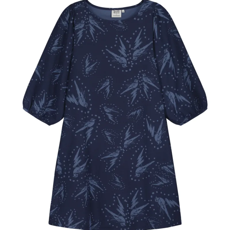 Tummansiniseen kuosiin on printattu vaaleansinisiä lintuja. Paljon kokoja, isoin koko 3XL (56/58).