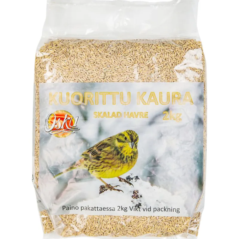 Suomalaista kuorittua kauraa ulkolintujen ruokintaan. Sitä suosivat erityisesti esim. keltasirkku ja varpuset. Rehuaine. Pakkauskoko 2 kg.