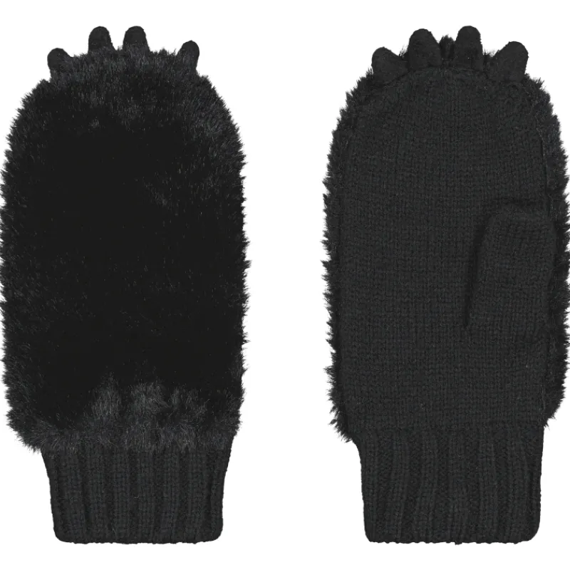 Suloisen pehmoisissa lapasissa on leveä resori ranteessa. Hauska keinotekoinen turkis-kuosi, jossa on kivat kynsitehosteet. Väri musta.