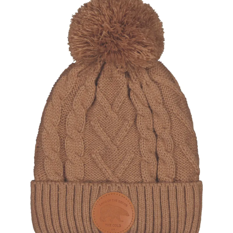 Palmikko-kuosia somistaa kiva lankatupsu-somiste sekä merkki-detalji, väri ruskea.