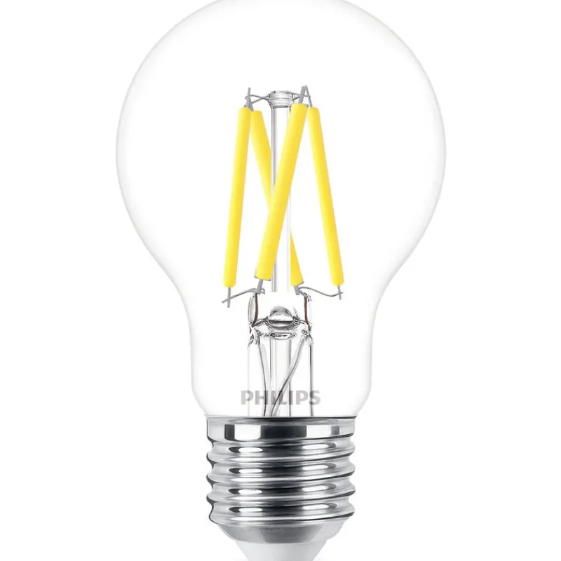 Philips LED-lamput tarjoavat kauniin ja lämpimän valkoisen valon, poikkeuksellisen pitkän käyttöiän sekä välittömän ja merkittävän energiansäästön. Puhtaasti ja tyylikkäästi muotoiltu lamppu korvaa täydellisesti perinteiset huurretut lamput.