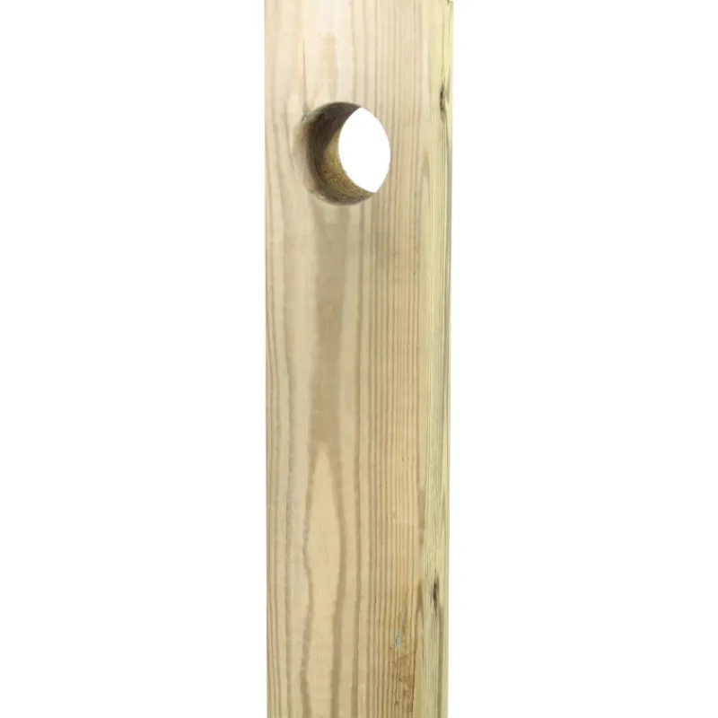 Kestopuinen köysitolppa ulkokäyttöön, koko 70 x 70 x 1200 mm. Vihreän tolpan voi käsitellä halutun väriseksi tarvittaessa. Valmis tolppa kaideköydelle, josta voit pujottaa läpi Piipon 36 mm kaideköyden. Helppo ratkaisu köysiaidan rakentamiseen.