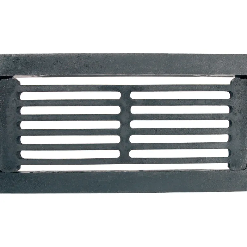 Valurautainen arina tulisijaan. Varustettu kehyksellä. Sisämitta: 165 x 410 mm. Ulkomitta 210 x 410 mm.