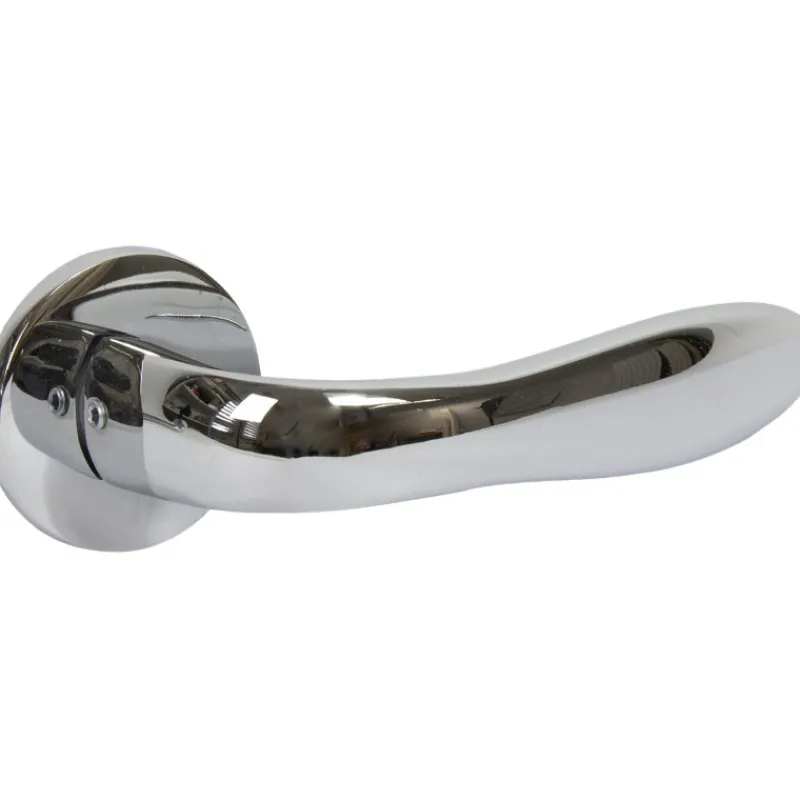 Tyylikäs pyöristetty ulko-ovenpainike kiiltäväksi kromattua messinkiä. Pakkauksessa on ovenpainike oven kummallekin puolelle.