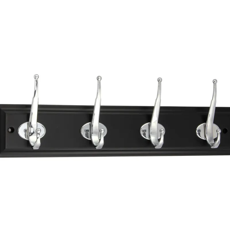 Tyylikäs vaatenaulakko, jossa neljä koukkua. Väri musta/kromi. Naulakon mitat 45 x 9 cm.