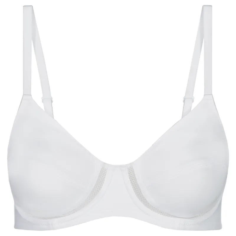 Sileää kuosia somistaa kuppien alareunaa myötäilevä verkkopitsikaitale, väri valkoinen.