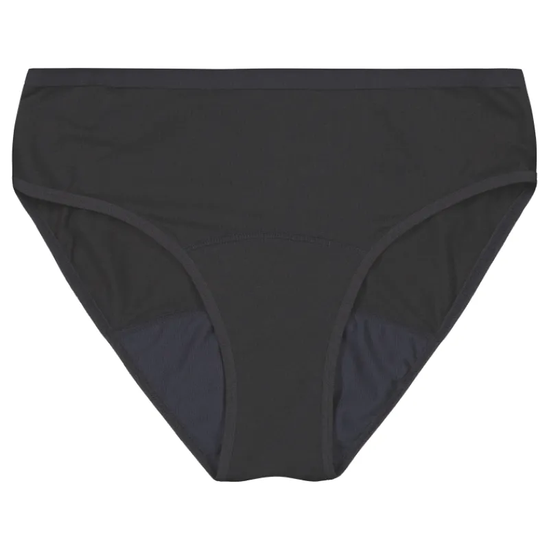 Perinteiset kuukautissuojat korvaavat, uudelleen käytettävät kuukautisalushousut ovat erittäin imukykyiset ja niissä on kolme erilaista kerrosta: kosteutta siirtävä kerros, imukykyinen ja hajuja poistava kerros sekä läpivuodon estävä kerros. Leveä kuminauha vyötärössä sekä mukavan tuntuiset pehmeät jalantiet. Väri musta.