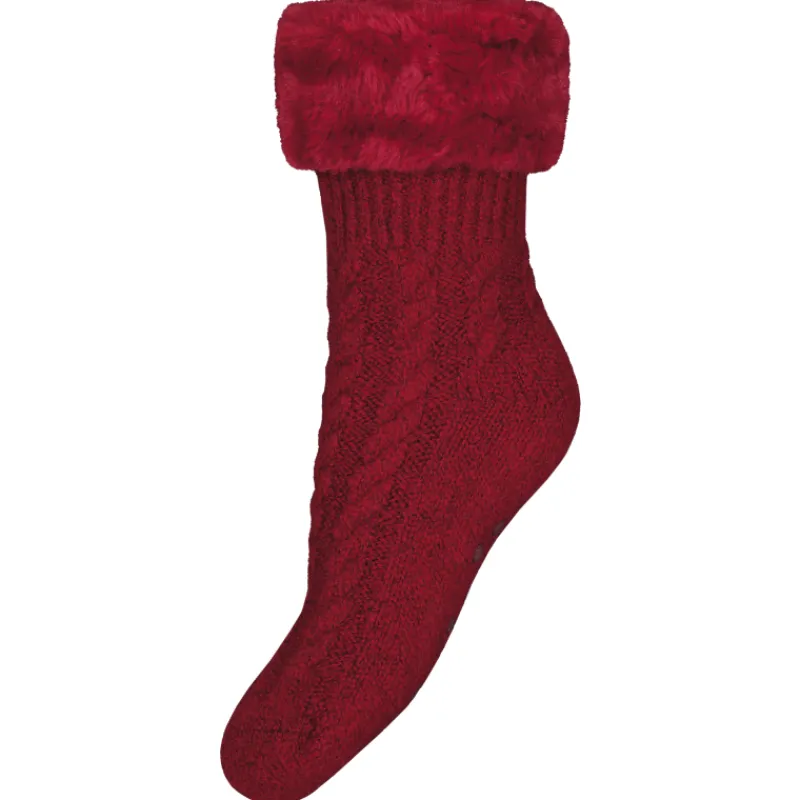 Paksut ja lämpimät naisten pehmosukat, 1 pr/pkt. Sukissa on palmikko-kuviointi, paksu teddykarvamainen vuori sekä silkkisen pehmeä pörröreunus. Pohjissa liukuesteet.