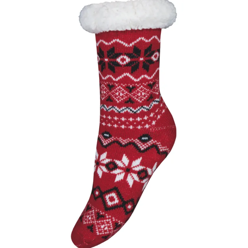 Paksut ja lämpimät naisten pehmosukat, 1 pr/pkt. Sukissa on kirjoneulekuviointi, paksu teddykarvamainen vuori sekä pohjissa liukuesteet.
