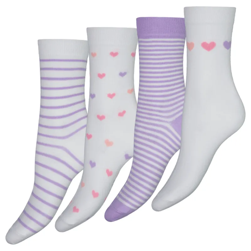 Naisten nilkkasukat kesäisillä väreillä ja erilaisilla kuvioilla, 4 pr/pkt. Sukat ovat miellyttävää puuvillasekoitetta.
