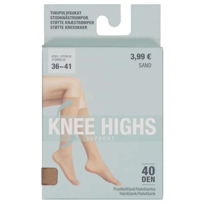 40 denierin puolikiiltävät naisten tukipolvisukat, 1 pr/pkt. Väri ruskea.
