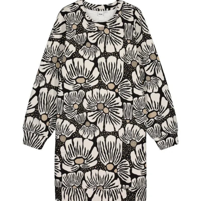 Naisten pitkähihainen Pola Jean-tunika puuvillasekoitetta. Neulostunikassa on kiva kukka-printtikuosi, väri musta/valkoinen/beige. Paljon kokoja – isoin koko 3XL (56/58).