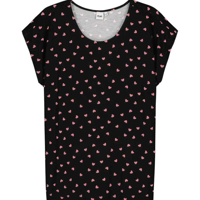 Hihaton naisten Pola Jeanetta-paita mukavan pehmeää viskoositrikoota. Topissa on hauska pilkku-kuosi, väri musta/pinkki.