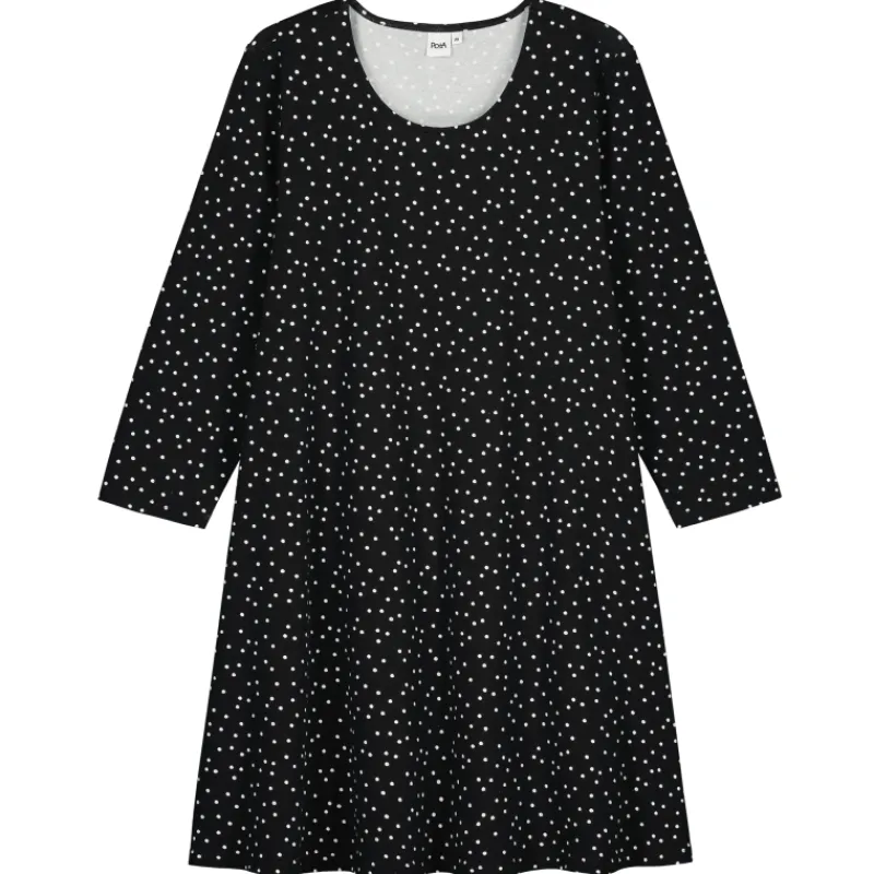 Väri musta/valkoinen pilkku-printtikuosi. Paljon kokoja, isoin koko 3XL (56/58).