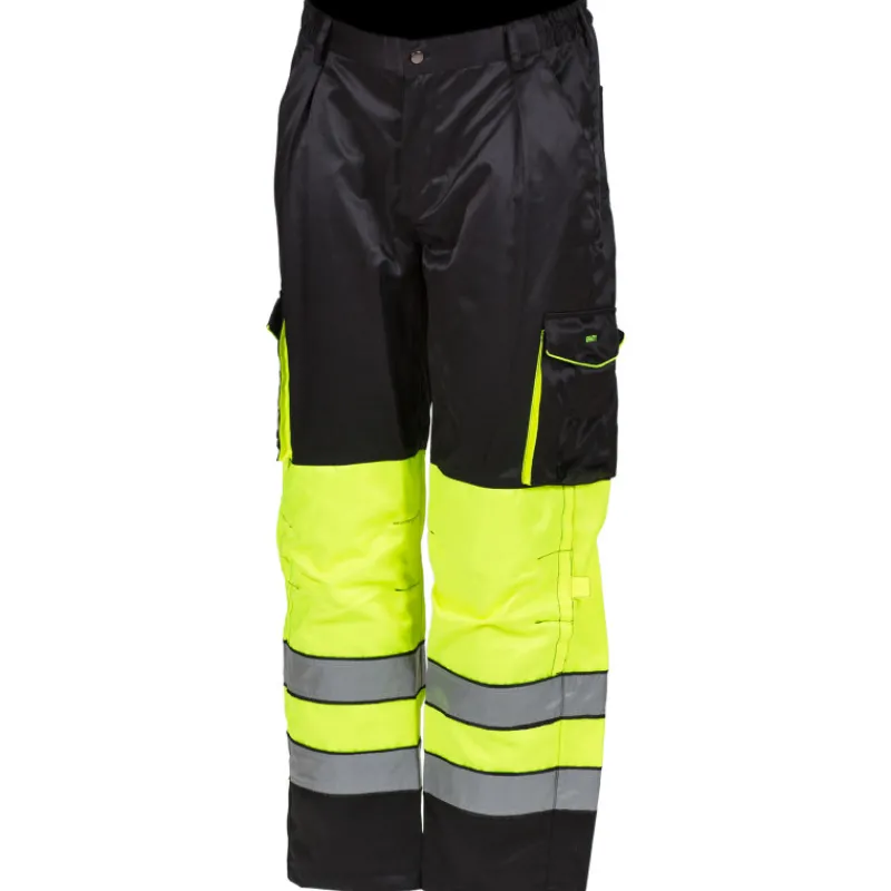 Kelta/musta vuoriton varovyötäröhousu. Materiaali 80% polyesteriä ja 20% puuvillaa. Pesu 40 asteessa. EN 20471 Lk.1.