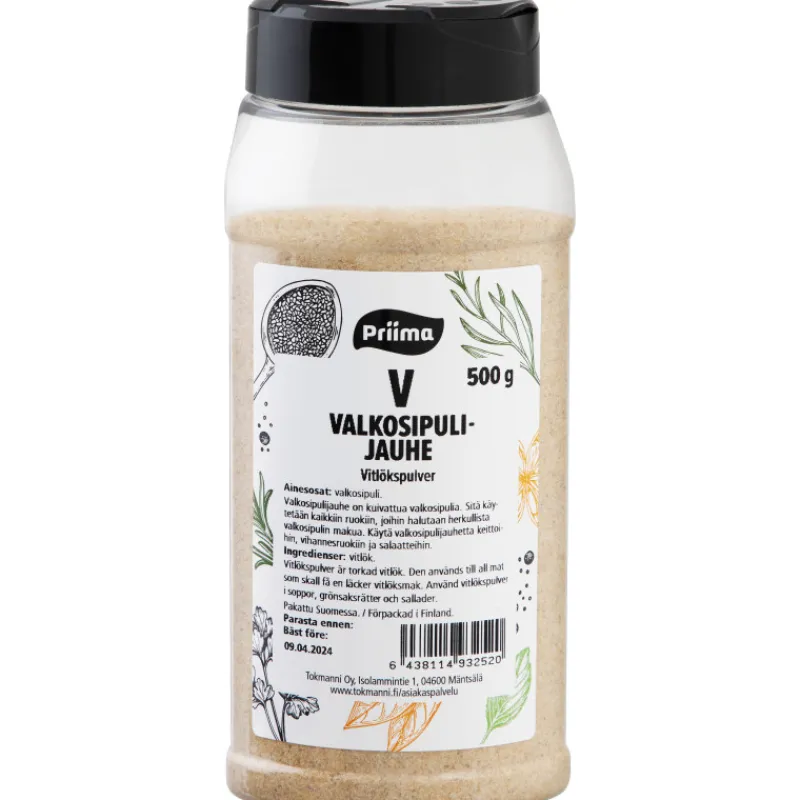 Priima valkosipulijauhe on kuivattua valkosipulia. Sitä käytetään kaikkiin ruokiin, joihin halutaan herkullista valkosipulin makua. Käytä valkosipulijauhetta keittoihin, vihannesruokiin ja salaatteihin. Kätevä kaksiosainen kansi annostelua varten. Pakkauskoko 500 g.
