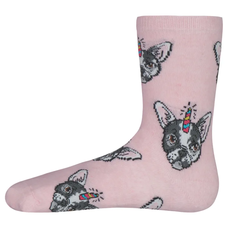 Isompien lasten sukat koirakuviolla, 1 pr/pkt. Väri vaaleanpunainen/musta. Yksi koko 31–36.