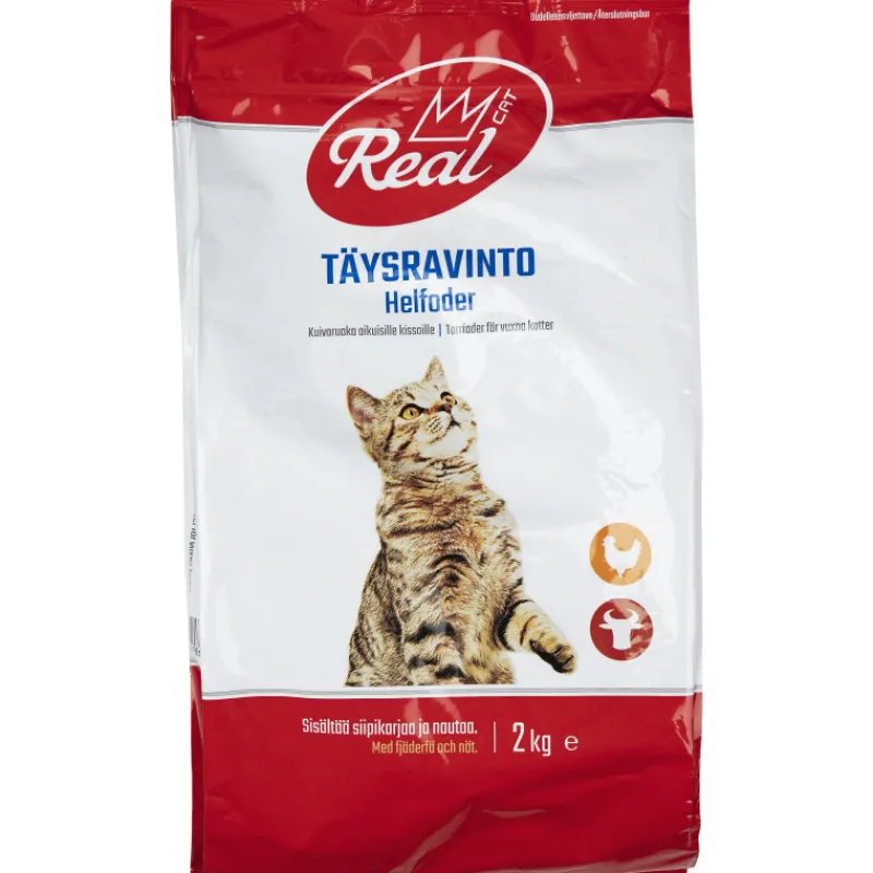 Real Cat Adult kana-liha on kattava kuivaruoka aikuisille kissoille. Se sisältää maukasta kanaa ja suussa sulavaa nautaa. Se pitää sisällään kissan tarvitsemat ravintoaineet ja se sopiikin erinomaisesti kissan perusravinnoksi.