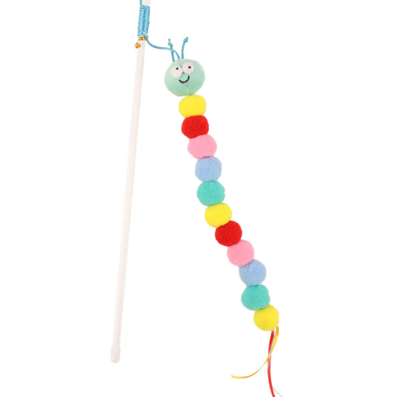 Iloinen toukkalelu koostuu värikäistä, pehmeistä palloista ja narukoristeista. Ongen ja toukkapehmon pituus 40 cm.
