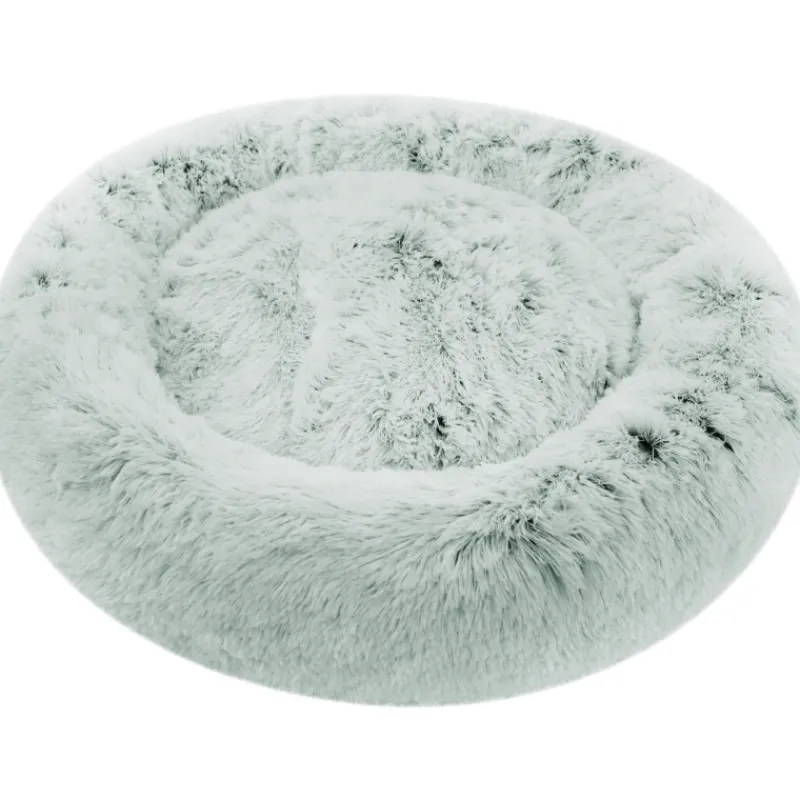 Upottavan pehmeä koiranpeti, jossa silkkisen pehmeä tekokarvapinta. Musta pohja ja vaaleanharmaat tekokarvat tekevät väristä eläväisen. Pedissä on kiinteä tyyny ja muhkeat laidat, joita vasten on hyvä lepuuttaa päätä.