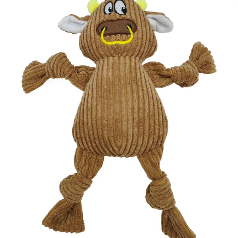 Kesytettävällä härkälelulla on solmuraajat ja pehmeä vartalo, jonka sisässä vinku. Materiaali polyesteriä. Mitat: 29 x 27 x 7 cm. Väri ruskea.