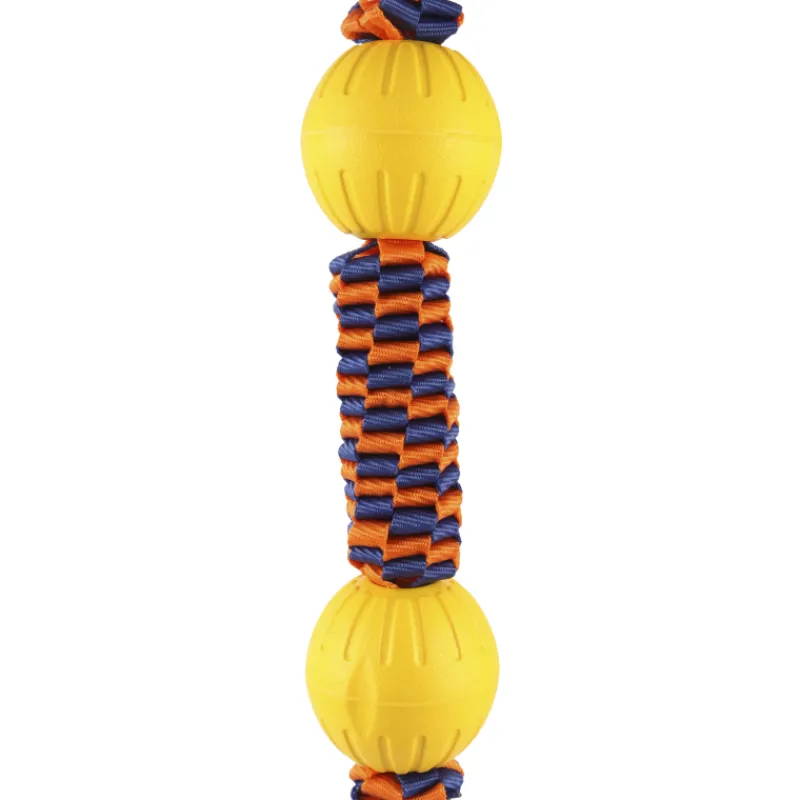 Kelluva patukkalelu vauhdikkaisiin vesileikkeihin! Äärettömän kevyttä patukkaa on hauska heitellä ja koiran on helppo tarttua hampailla keskellä olevaan vahvaan köysimateriaaliin. Päissä ontot pallot.