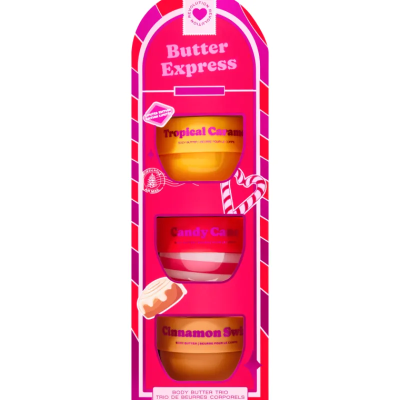 I Heart Revolution Butter Express -vartalovoi-trio sisältää kolme herkullisen tuoksuista vartalovoidetta, jotka auttavat pitämään ihon pehmeänä, kosteutettuna ja ihanan tuoksuisena koko päivän! Kaipaatpa sitten hehkua, kosteutusta tai juhlavaa herkkua, tämä trio on hyvä valinta. Rikkaat, vaahdotetut koostumukset kosteuttavat syvästi. Täydellinen valinta mukaan matkoille, lahjaksi ystävälle tai ihan vain kotikäyttöön!
