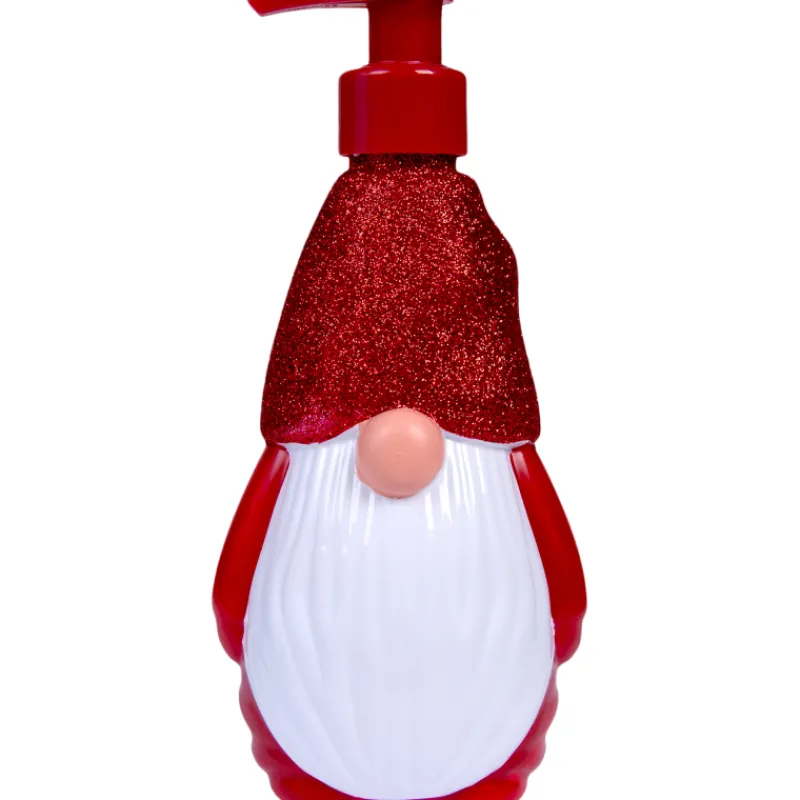 Sympaattinen tonttuhahmo-pumppupullo sisältää huurteisen sokeriluumun tuoksuista käsisaippuaa.