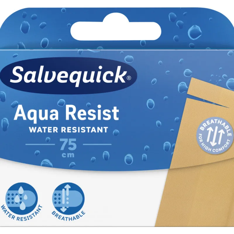 Salvequick Aqua Resist muovilaastari on vettä ja likaa hylkivä. Hengittävässä laastarissa on erittäin imukykyinen haavatyyny, ja laastari sopii erilaisille ihoalueille. 75 cm pituisesta muovilaastarirullasta saa leikattua kätevästi haavan kokoisia laastareita.