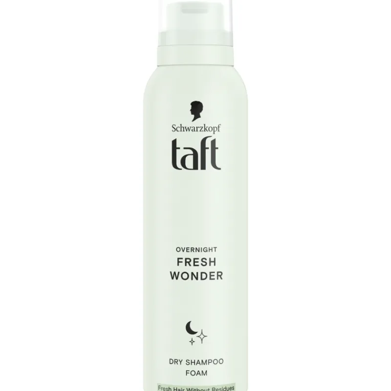 Schwarzkopf Taft Dry Shampoo Overnight Fresh Wonder -kuivashampoovaahto raikastaa hiukset yöunien aikana, saaden ne tuntumaan raikkailta ilman tuotejäämiä. Koostumus estää hiuksia tuntumasta kuivilta ja muotoiluvaahto sopii kaikille hiustyypeille. Koostumus on vegaaninen ja silikoniton.