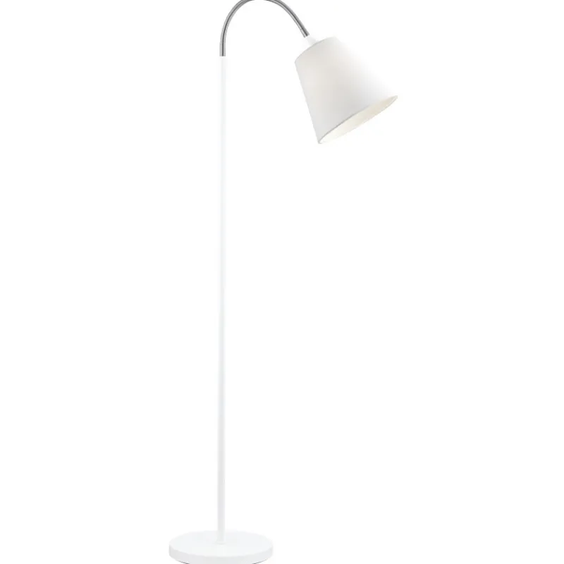 Mattavalkoisen värinen lattiavalaisin, jossa on luonnonvalkoinen varjostin. Valaisin sopii hyvin esimerkiksi kodin olohuoneeseen. Säädettävä varsi mahdollistaa valon tarkan suuntaamisen ja on näppärä lähityöskentelyyn. Valaisimen korkeus 145 cm, pohjalevyn halkaisija 25 cm. Jännite 230 V 50/60 Hz. Kotelointiluokka IP20.