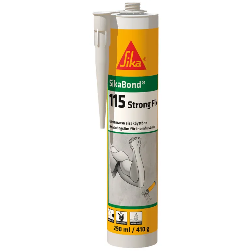 SikaBond-115 Strong Fix on 1-komponenttinen rakennusliima, jolla on hyvä loppulujuus ja joka sitoo yleisimmät rakennusmateriaalit yhteen. Soveltuu sisäkäyttöön sekä ulkokäyttöön suojatuissa kohteissa.