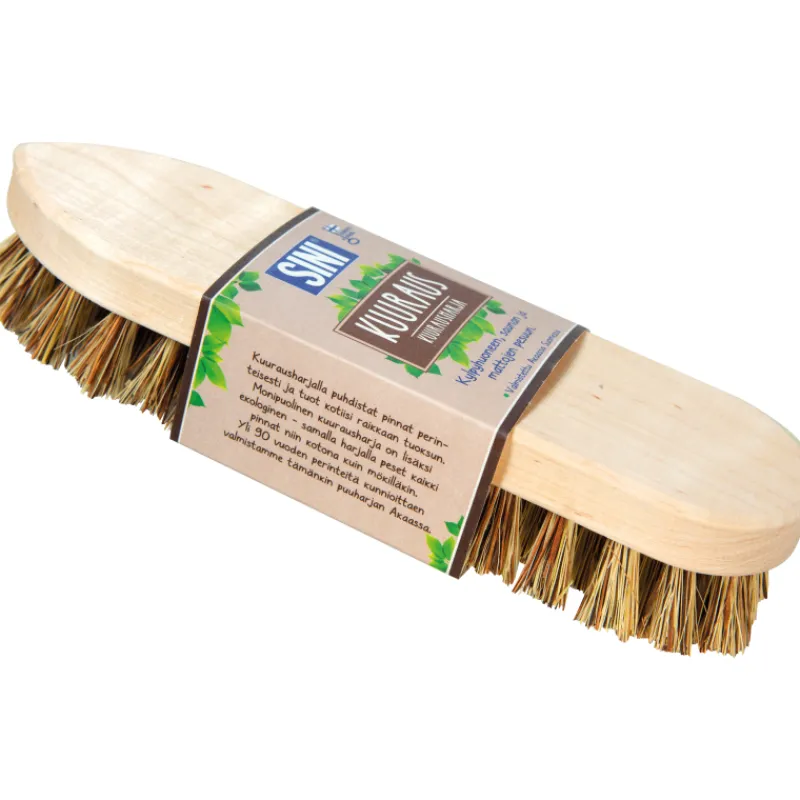 Puhdista pinnat niin kotona kuin mökillä perinteisesti puisella SINI-kuurausharjalla, näin saat puhtaan raikkaan tuoksun kotiisi. Kuurausharja sopii monipuolisesti kylpyhuoneen, saunan, mattojen sekä kaikkien vesipesua kestävien pintojen pesuun. Puu-runkoisen puhdistusvälineen harjasten materiaali on luonnonkuitu. Valmistettu Akaassa Suomessa – Avainlipputuote.