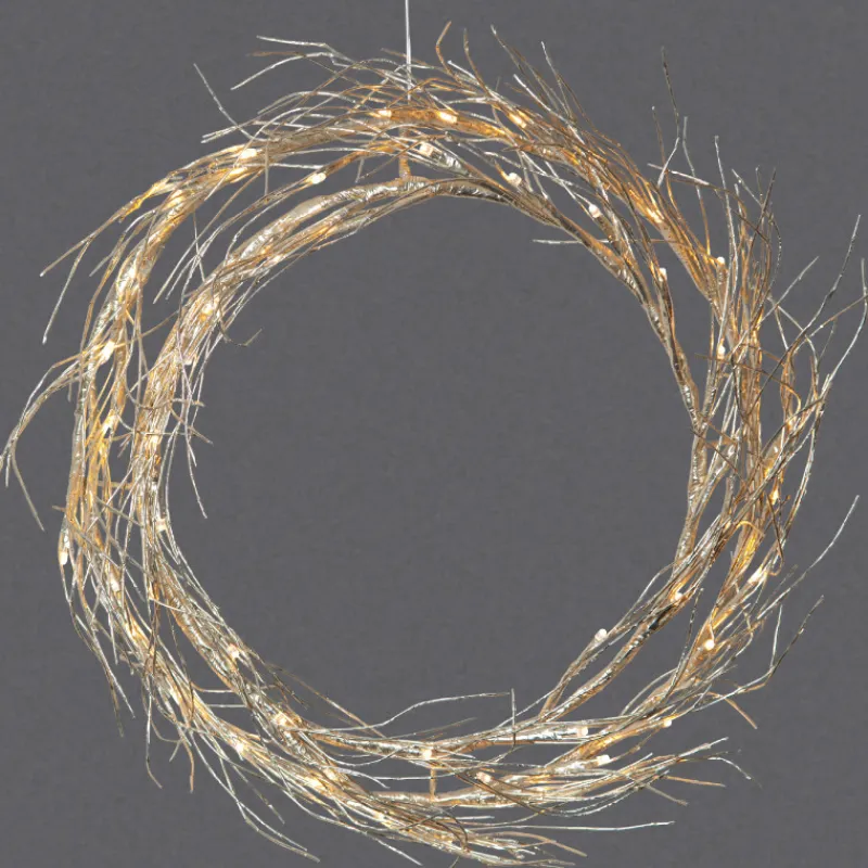 Upea kranssi seinälle tai ikkunalle. Kevyesti kullansävyinen kranssi sopii joulukauden lisäksi myös muihin juhlakausiin. 50 pientä LED-valoa luovat kaunista pehmeää valoa. Virtajohto 3 m.